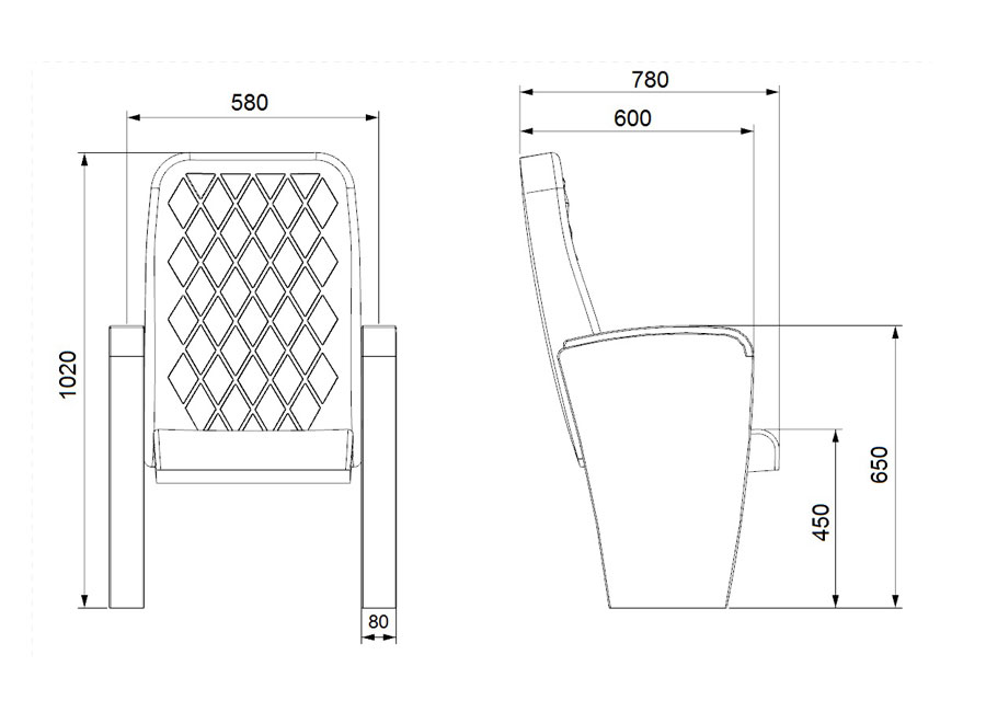 The legs are made of 18 mm mdf material and covered with laminated fabric The armrest is made of polished wooden from beech material. The Armrests between the seats that are installated in sequentially are used in common. Armrests between the seats are used as a common. Connection parts of the seats to the floor are made of 6 mm sheet metal. The seats are fixed to the floor with double legs and suitable fasteners.