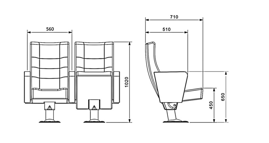 MDF armrests are fix on the metal frame. The armrest is made of polished wooden from beech material. Armrests between the seats are